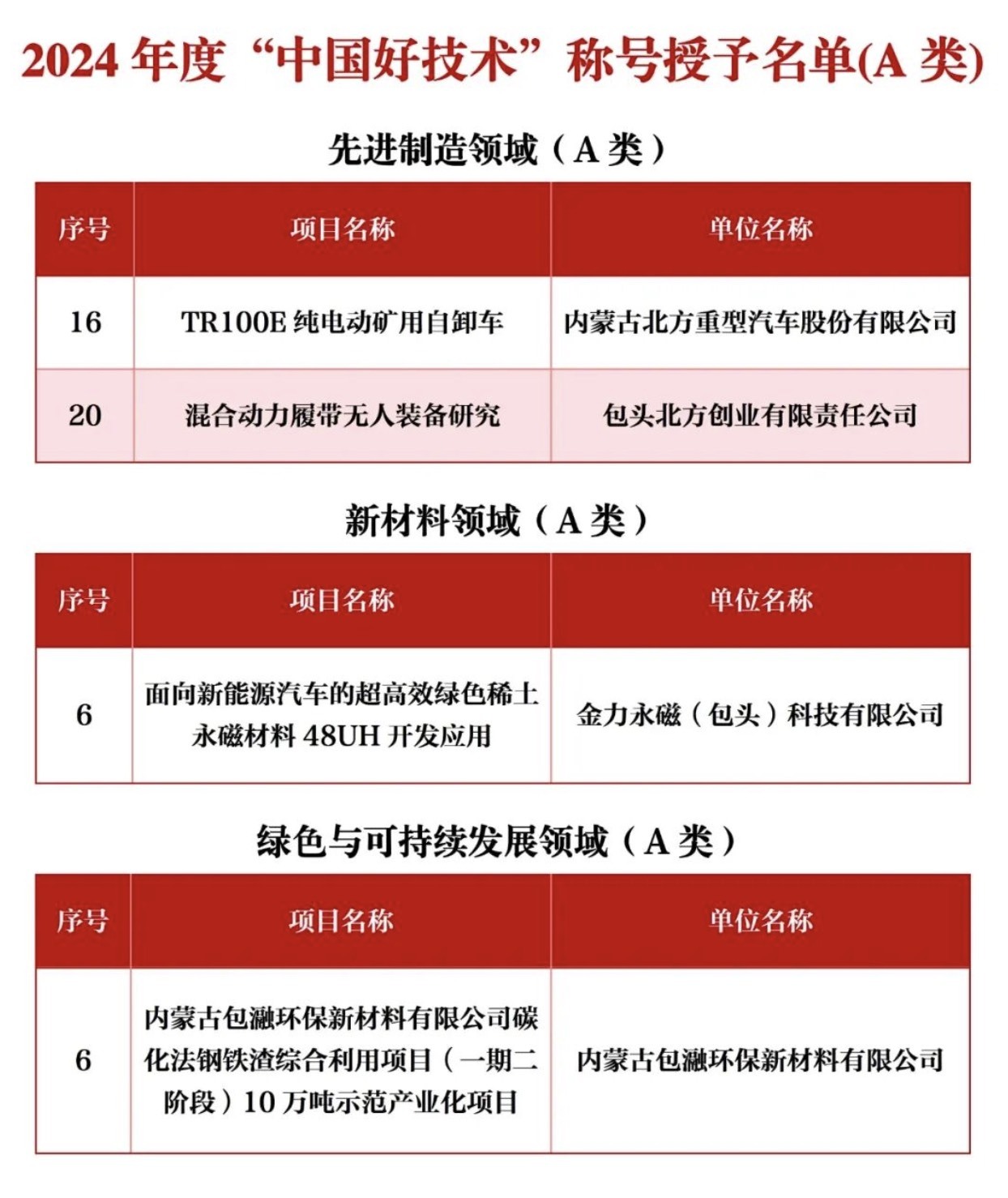 近日,2024年度“中国好技术”评选结果正式揭晓,北方股份“TR100E纯电动矿用自卸车”科技成果入选“中国好技术”A类项目库,是北方股份技术实力与创新能力的有力证明。