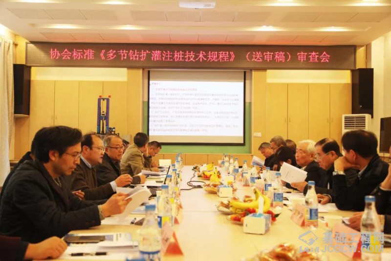 根据中国工程建设标准化协会《关于印发2017年第一批工程建设协会标准制订、修订计划的通知》(建标协字[20174]014号)的要求,由北京荣创岩土工程股份有限公司、中国铁路设计集团有限公司主编,中国建筑设计研究院有限公司等单位共同编制的《多节钻扩灌注桩技术规程》(以下简称《规程》)送审稿审查会于2018年11月21日在北京召开。会议由中国工程建设标准化协会地基基础专业委员会主任高文生主持,中国工程建设标准化协会技术标准部副主任汤亚军出席会议,审查委员会主任委员钱力航研究员、副主任委员周国钧教授等审查专家,中国铁路设计集团有限公司许再良大师、荣创岩土公司总经理张微、总工程师戴斌等主编及参编单位领导和代表共同参加了此次审查会。