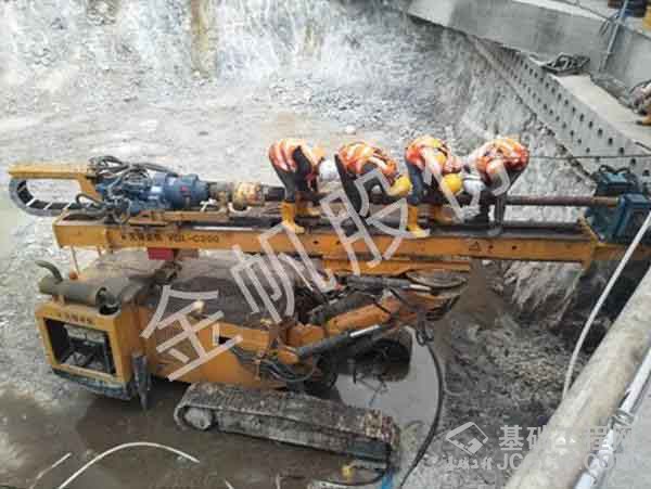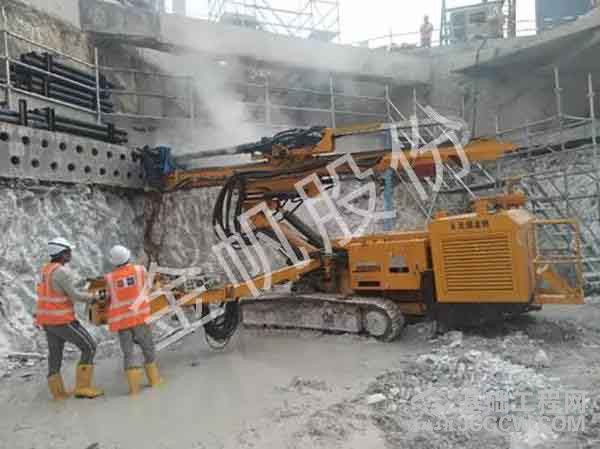 马来西亚首都吉隆坡TRX管棚项目,是一个地下立交的关键控制工程,需要在现有建筑底下钻水平管棚孔,钻孔直径165mm,钻孔深度60米,水平精度千分之二,精度要求异常高;地层构成复杂,还有地下钢筋障碍物需要穿过,稍有不慎,后果很严重,因此,施工风险非常大。中国铁建集团的大哥大铁军——中铁一局集团公司使用金帆股份的YGL-C200型全液压履带式顶驱冲击钻机,顺利的解决了施工中所遇到的难题。目前已经完成了3500米的施工,平均每天完成一个孔,钻孔质量满足设计要求,快速高效,深受施工单位和业主好评。