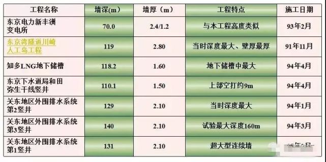 东京湾隧道川崎人工岛作为盾构工作井和隧道风井,采用地下连续墙围护,地下墙深度119m,壁厚2.8m ,圆形竖井直径103.6m,底板在海平面以下70m处。