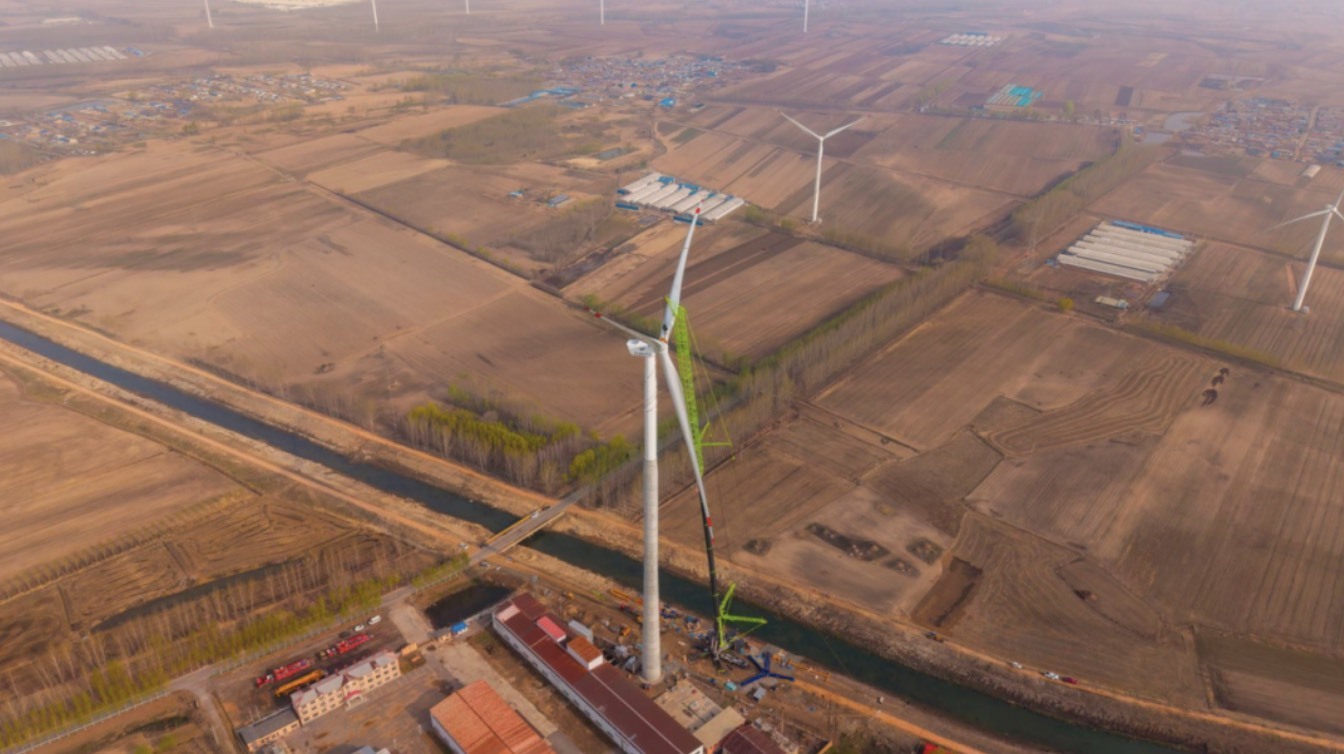 ▲中联重科全球最大吨位4000吨级全地面起重机正在吊装