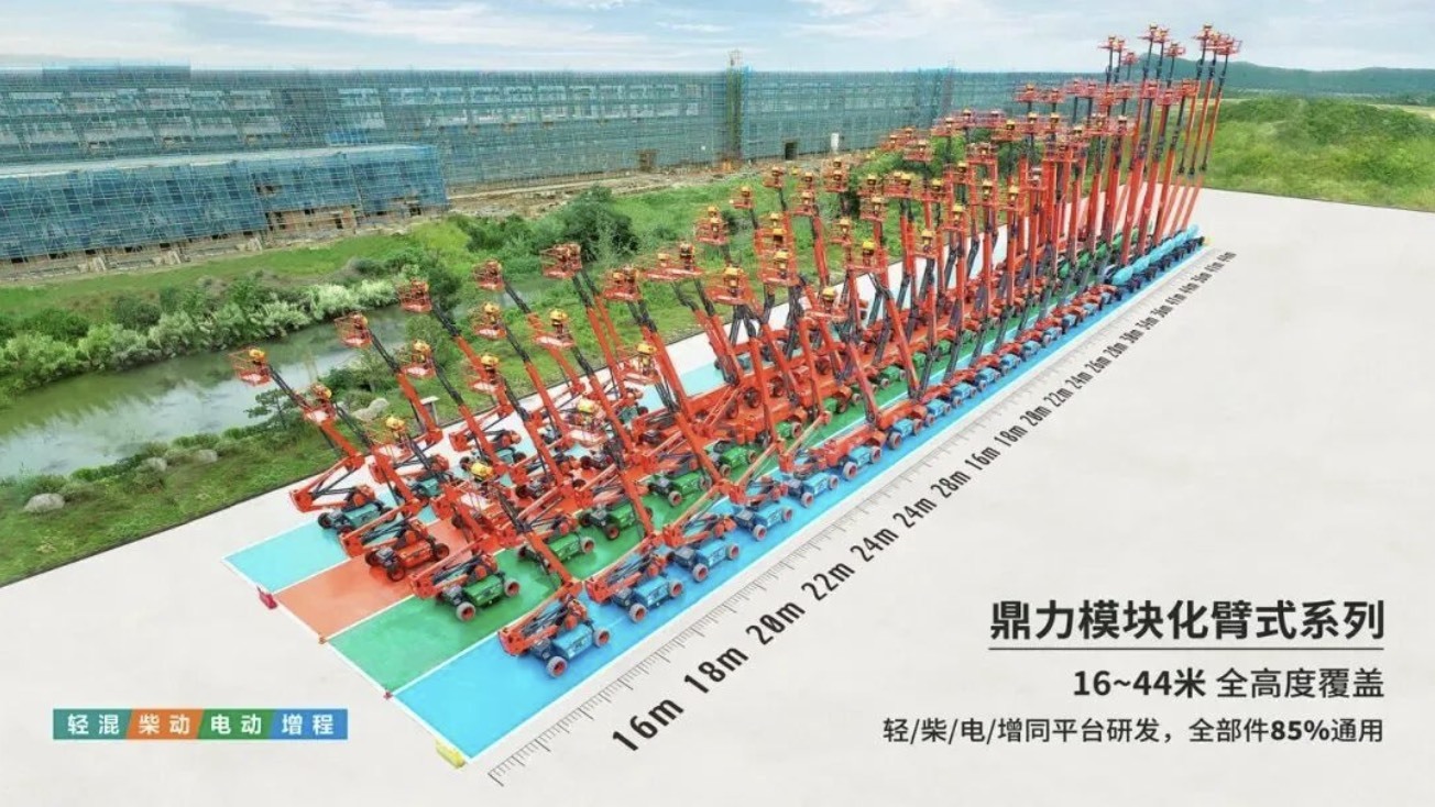 产品方面,浙江鼎力早已在业内率先实现全系列产品电动化,并推出3年质保服务,其中采用大载重、模块化设计的全臂式系列更为业内首创。