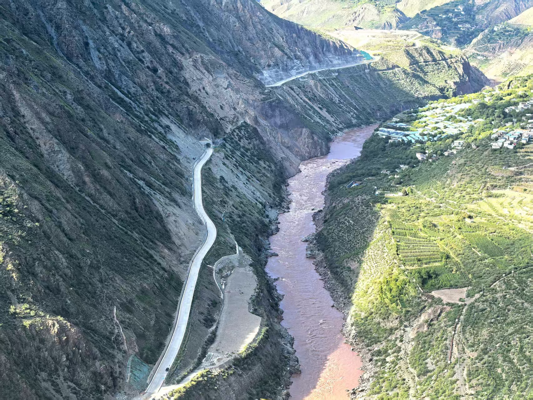 项目位于西藏自治区昌都市芒康县曲孜卡乡境内澜沧江右岸,是连接右岸上游存料公路与扎西扬顶存弃渣场公路的关键交通节点,未来将作为相关工程建设核心交通道路。公路沿澜沧江右岸布设,按工程对外Ⅲ级专用公路标准建设,设计速度30千米每小时,路基宽8.5米,行车道宽7.0米,采用水泥混凝土路面,道路荷载标准达公路-I级,同时满足汽-60与特-300要求。