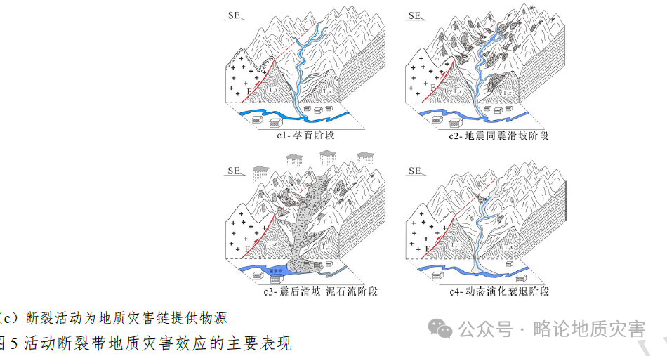 活动断裂灾害效应:揭示断裂带通过地形改造、应力场干扰、物源供给等机制加剧滑坡、泥石流灾害。
