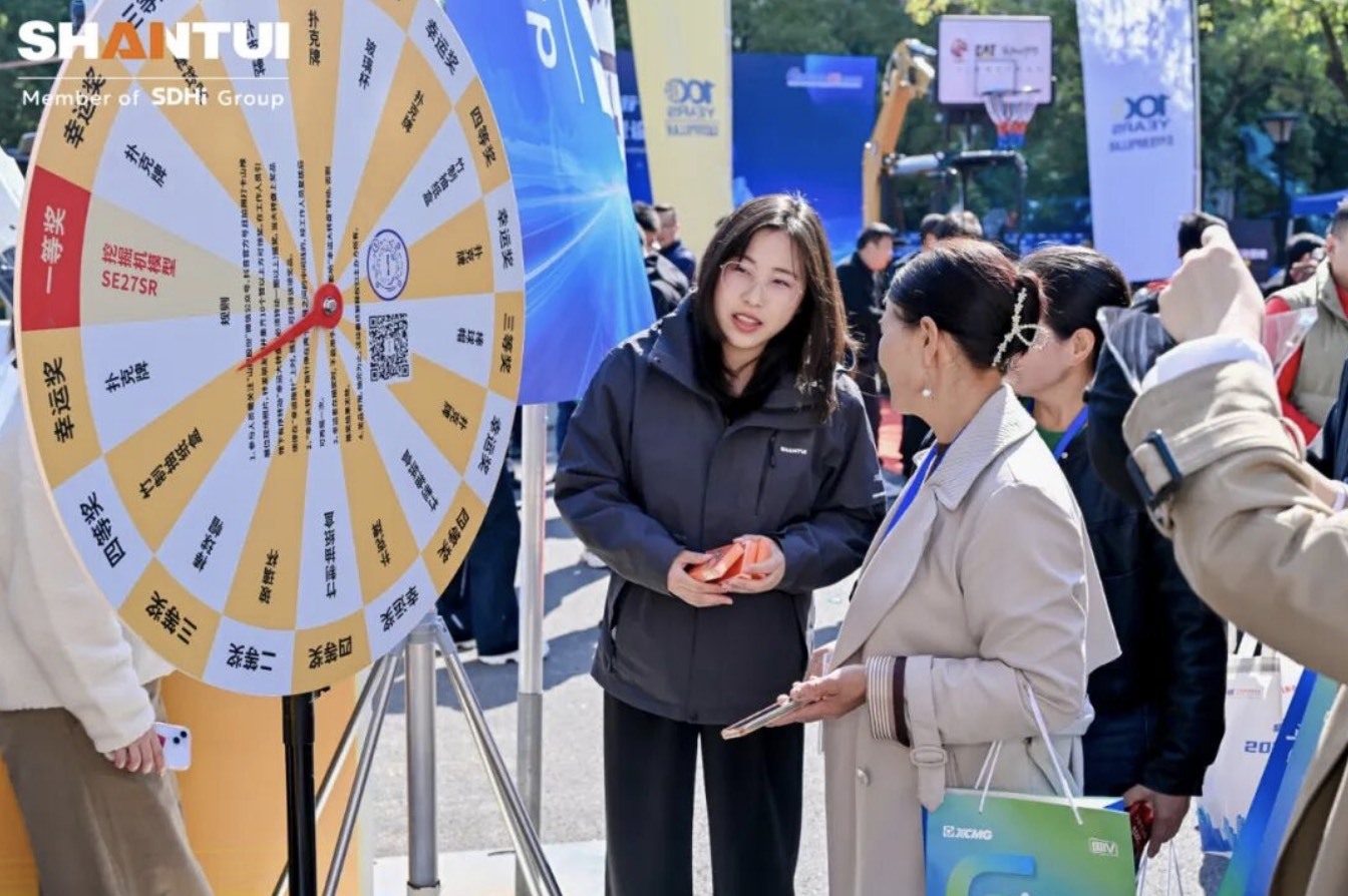 为增强现场参与感,山推特别设置了转盘抽奖互动区与现场直播讲解活动。趣味十足的互动环节吸引了大量观众参与,现场掌声与笑声不断;而直播镜头则将山推微挖的非凡表现实时传递至全国各地,让更多用户见证山推的品牌风采。