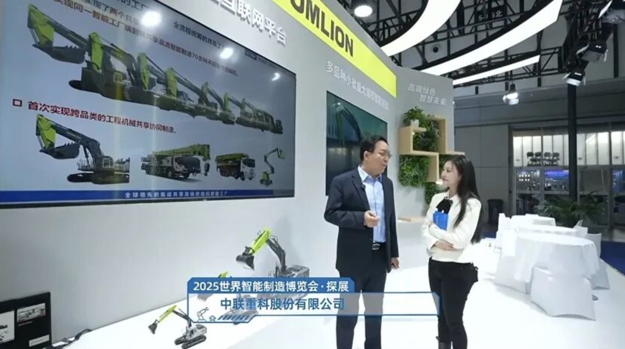 中联重科以挖掘机共享制造智能工厂入选全国首批领航级智能工厂培育名单,是湖南省唯一一家入选企业。28日上午,中联重科展位迎来央视网记者直播探访,现场报道领航级智能工厂的硬核实力。